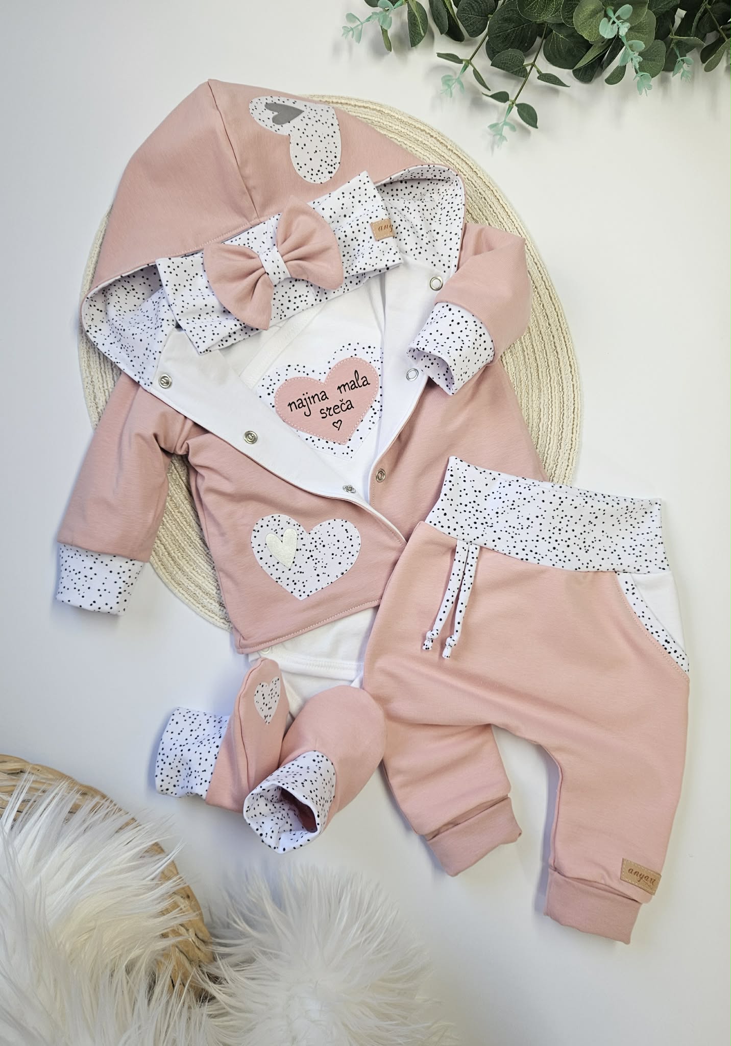Komplet “najina mala sreča” – puder roza (kapica)