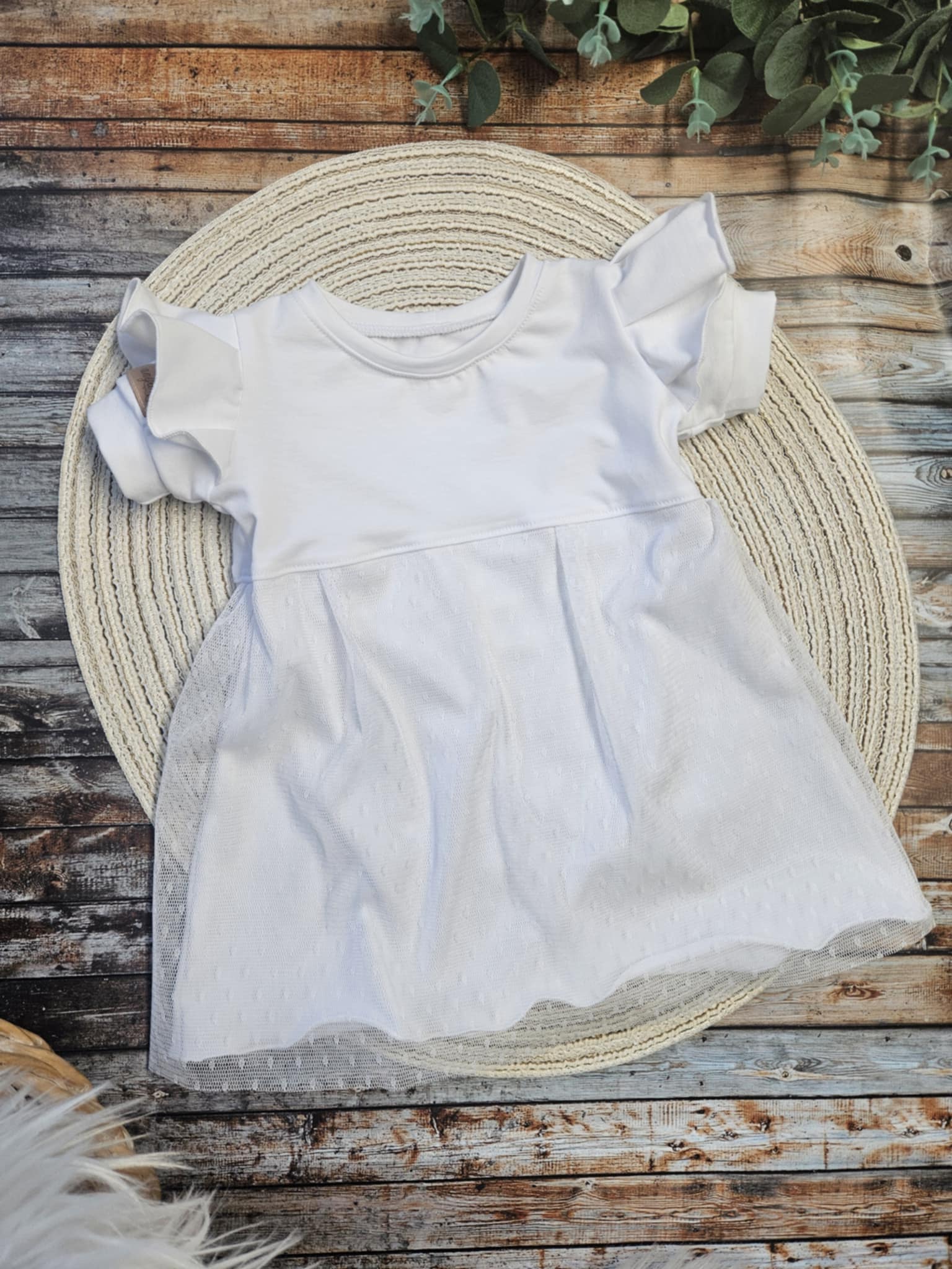 Kompletek vsebuje bodi (na preklop do št. 68, oz klasični v večjih številkah) in baggy hlačke z volančkom, ter podaljšanimi patenti.