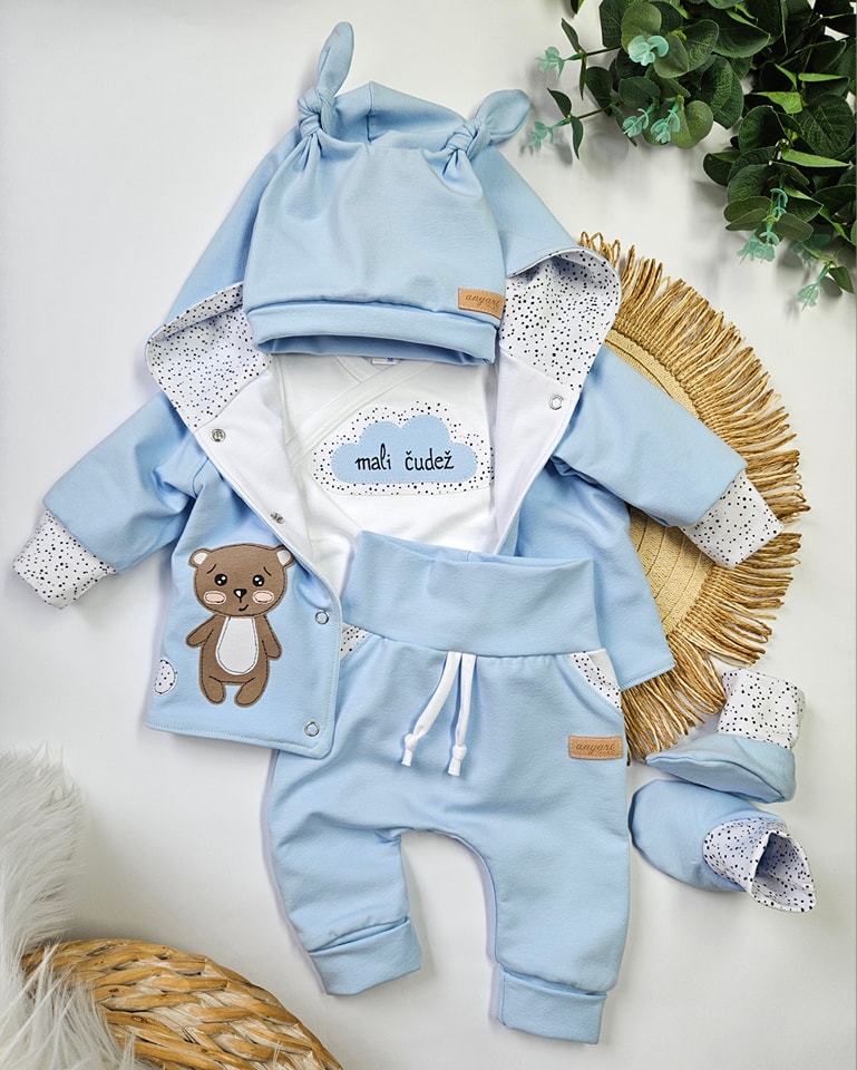 Komplet za dojenčka 62/68 – kapica in rutka, moder