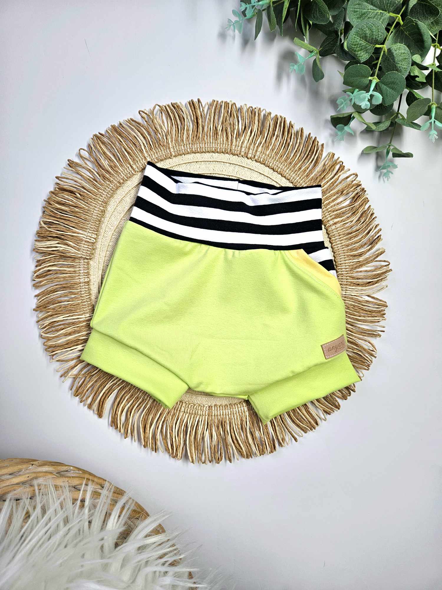 Poletni komplet velikosti 68; vsebuje bodi z ročno izdelano aplikacijo ter udobne kratke hlačke.